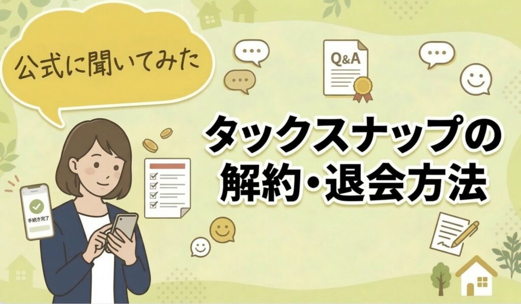 タックスナップの解約・退会方法が知りたいな‥大変なのは嫌だな〜 解約のしやすさってめちゃ大事だとね!実は私も迷って、公式に直接問い合わせてみたんだ。その時の回答も踏まえてわかりやすく解説していくよ。 タックスナップ解約と退会の違い ◾️解約:... -