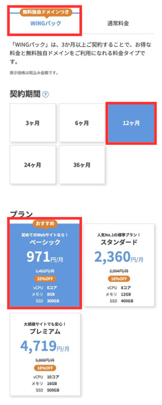 ちなみに初めてスマホでConoHa WINGを開設する人におすすめなプランは以下の通りです。