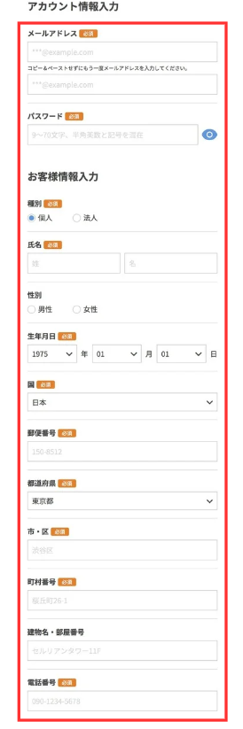 アカウント開設・契約に必要な個人情報を入力します。