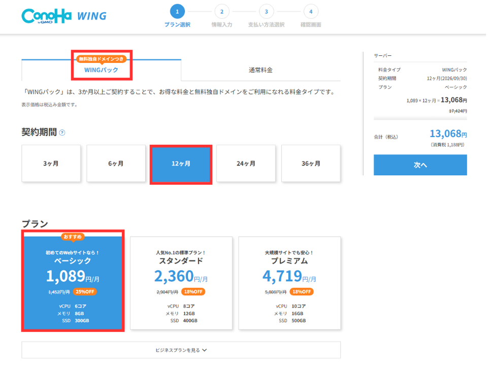 ConoHaWING公式サイトの「お申し込み」をクリック