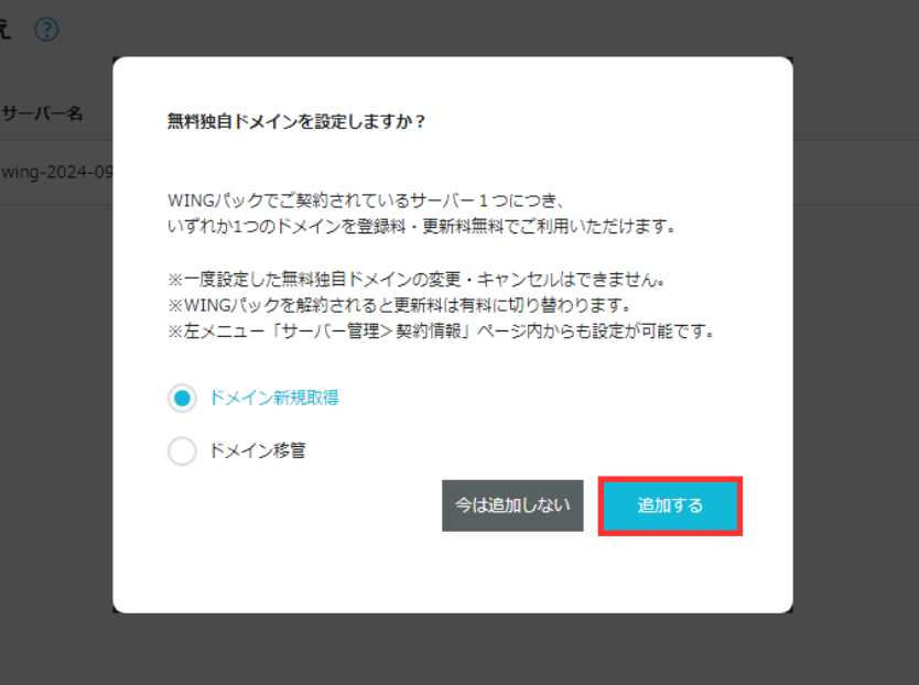 なお、WINGパックで契約することで無料独自ドメインを新規取得できますよ。
